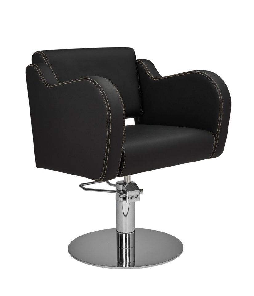 Ayala Holly 01 P-7 Scaun de Coafor Negru cu Cusături Aurii și Bază Rotundă Cromată Argintie