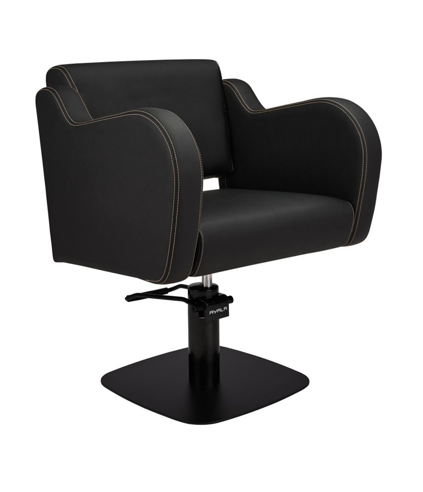 Ayala Holly C1 P-7 Scaun de Coafor Negru cu Cusături Aurii și Bază Pătrată Neagră