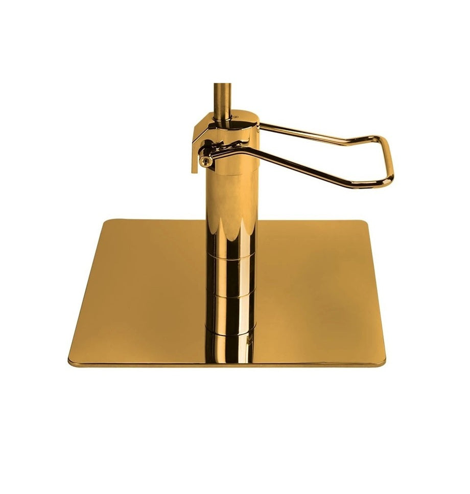 🔳 Elementul vedetă al acestui model este baza pătrată aurie – robustă, stabilă și spectaculoasă din punct de vedere vizual. Aceasta transformă scaunul într-o piesă de mobilier statement, perfectă pentru saloanele care vor să atragă privirile prin detalii glam și accente premium.
