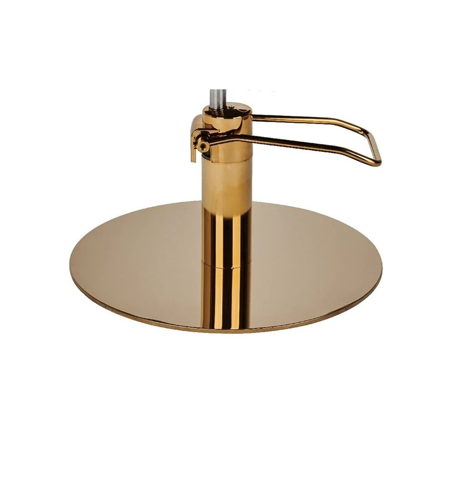 🔆 Piesa centrală a acestui model este baza rotundă aurie, un detaliu vizual spectaculos care aduce un plus de lux fără a compromite stabilitatea. Oferă salonului un aspect profesional și premium, devenind un element decorativ în sine.