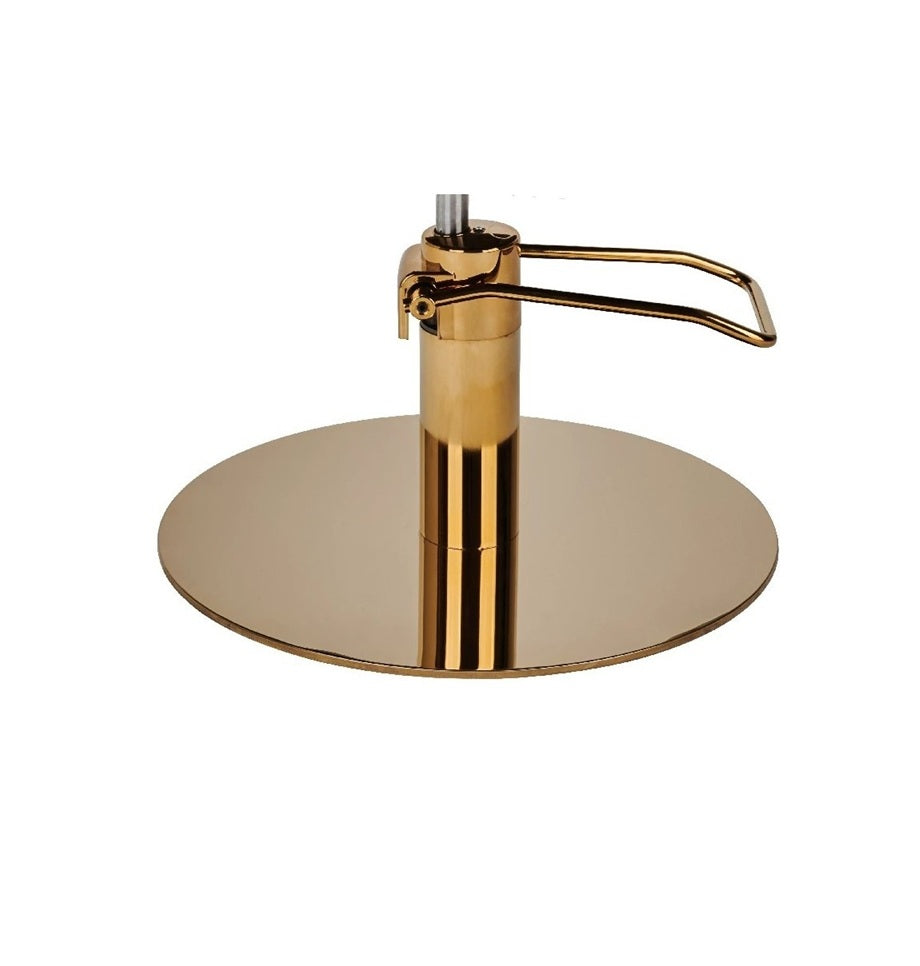 🔘 Baza rotundă aurie este elementul care transformă acest model într-un adevărat obiect de design. Oferă stabilitate excelentă și un plus de strălucire, fiind ideală pentru saloanele care doresc un look glam, luxos și modern.