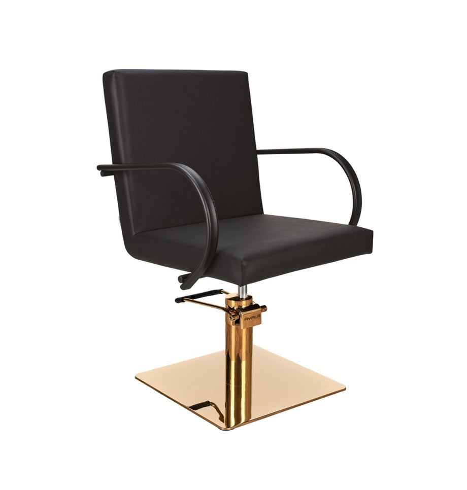 ✨ Baza pătrată aurie oferă stabilitate excepțională și transformă scaunul într-un element decorativ central al salonului. Este robustă, elegantă și perfect proporționată pentru a asigura confort și siguranță clienților.